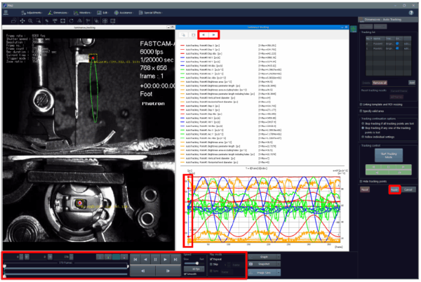 Photron FASTCAM Analysis (PFA2) is a powerful tool for measuring displacement, acceleration, and velocity from video footage. It automatically tracks markers and feature points using advanced pattern matching, making motion analysis accessible to users of all experience levels.